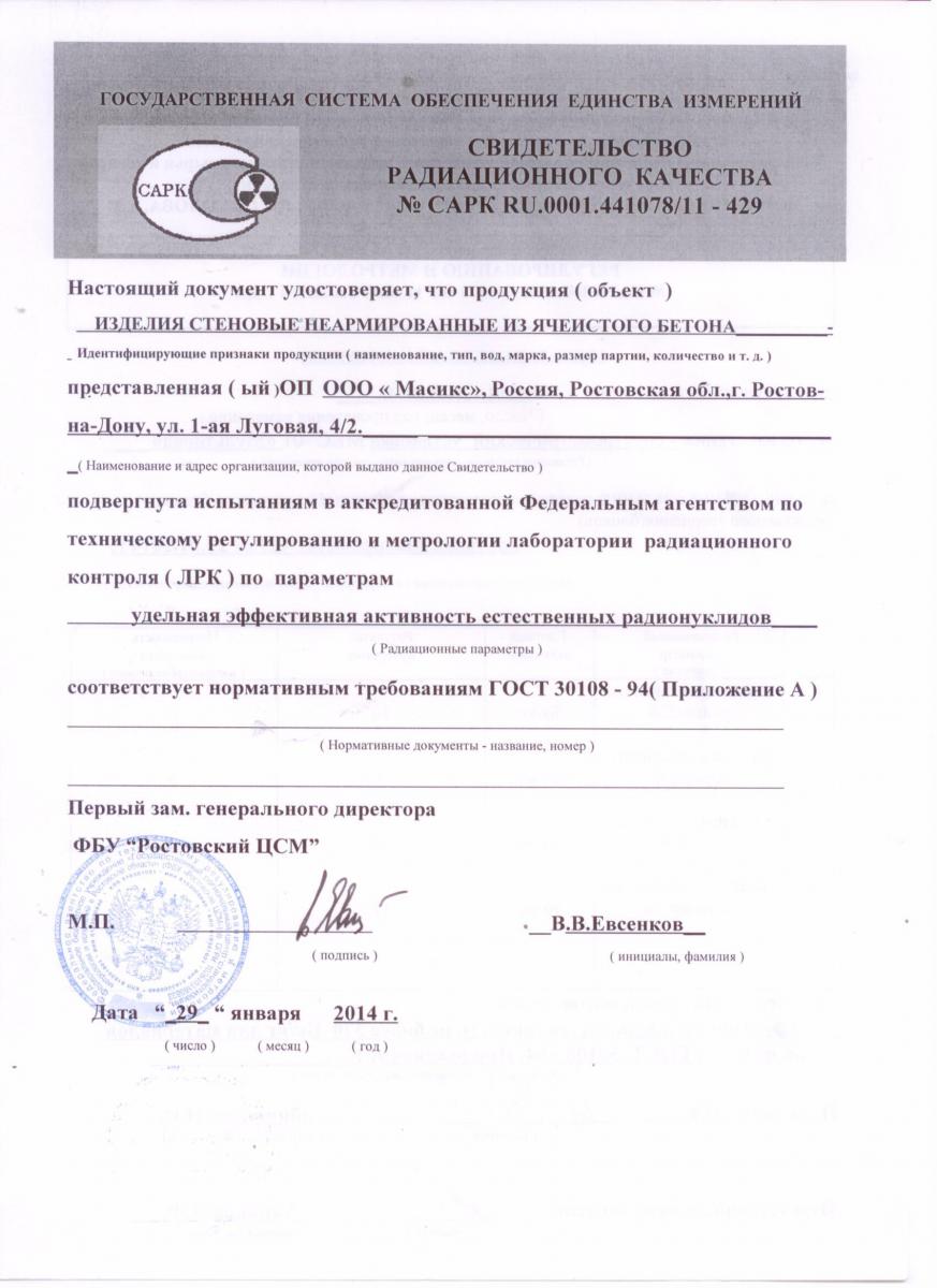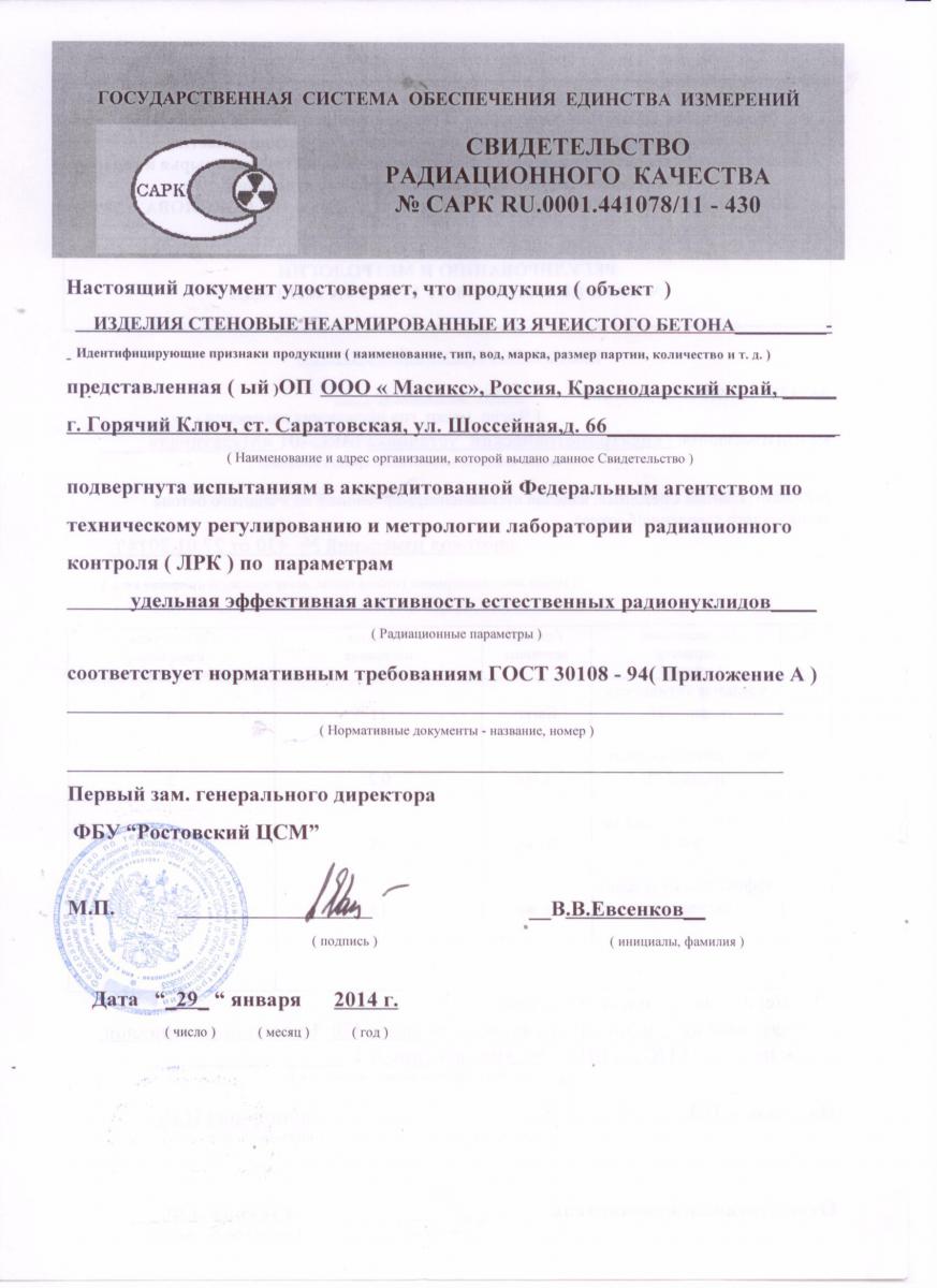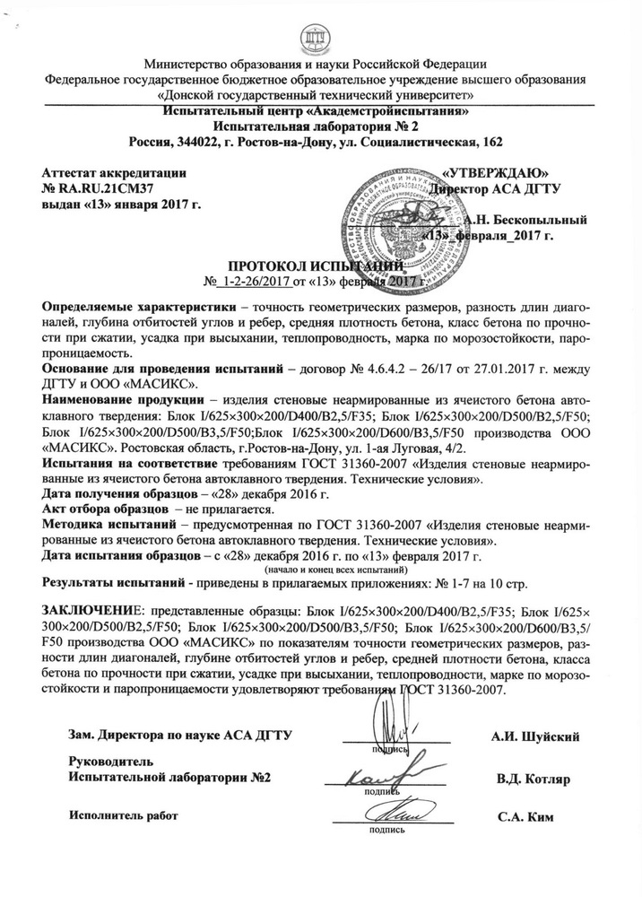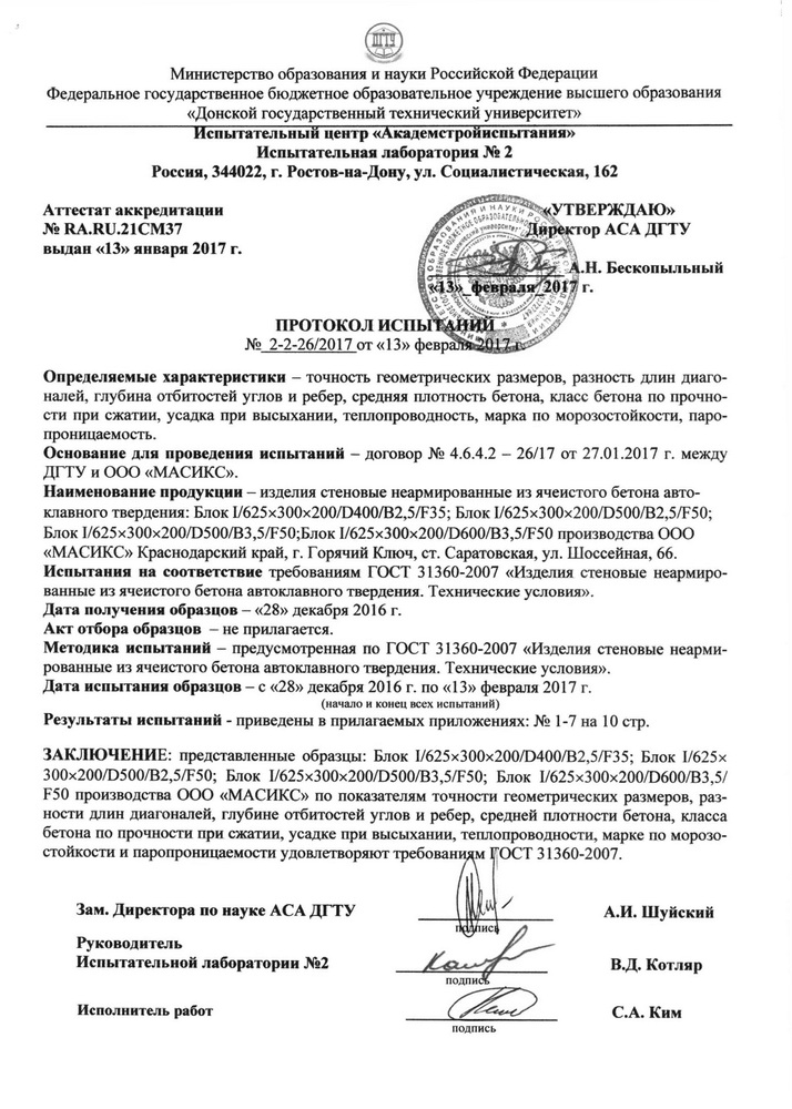 Газобетон Masix D500 обладает следующими характеристиками: